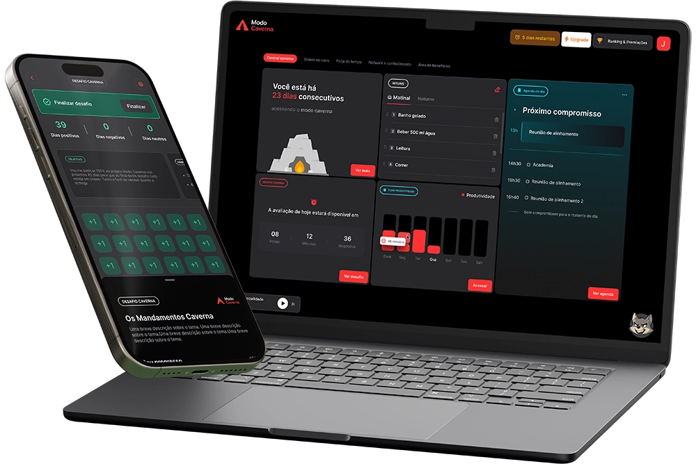 O Modo Caverna nasceu dessa jornada — não é só um app, é um sistema de transformação pessoal que já impactou a vida de milhares de pessoas. Agora, pode impactar a sua também.